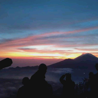 Volcano Batur Sunrise Climbing Departure ; 02.30 am Lets explore the peak of volcano Batur and see the magnificent view of the morning sunrise . We pick you up early morning at 02.30 am from your hotel than drive to the edge of lake Batur , where the trek begin . Approximatelly two hours climb up to the peak of volcano Batur , and accompanied by a experienced tour guide . On the top , you will be serve a package breakfast with special volcanic steamed eggs , ( coffe or tea included ) , and waiting for the beautiful Sunrise with opportunity to have a nice view of mount Abang , Vol cano Agung and Volcano Rinjani in Lombok island . On the way back we'll visit spices garden where we can try coffe , hot cocholate , ginger tea , etc. This tour included : Hotel transfer , light breakfast , free test bevered at gard en , guide service .